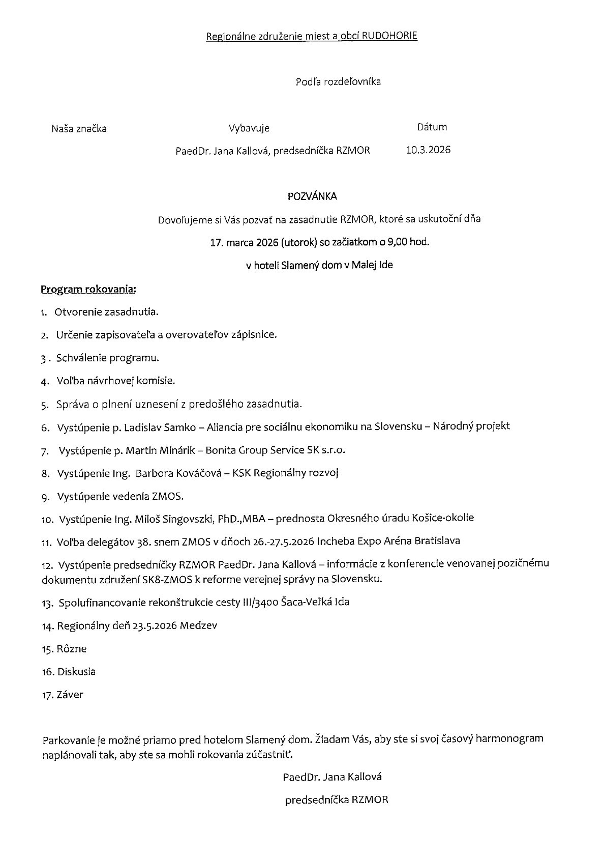 Pozvánka na zasadnutie RZMOR dňa 17.03.2026